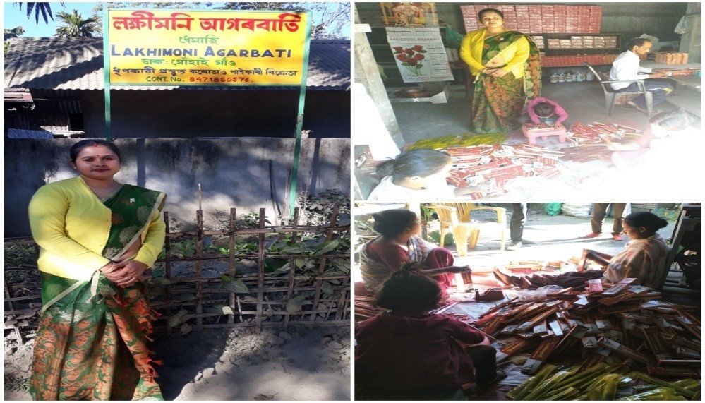 Here is the story of a poor unemployed women, Mrs. Lakhimoni Das, who had resolved to bring about a change in her life and chose to be self-employed to support her family.Neither low academic qualifications nor poverty or unemployment, could deter her courage and finally with the help of PNB RSETI, Dhemaji, she achieved her goals. Due to poor economic conditions of her family, she had to discontinue her studies after 1Oth standard. She knew that given her qualification, searching a job to sustain her family was going to be difficult. She therefore decided to opt for self-employment and approached District Industries & Commerce Centre [DIC] seeking their guidance. The authorities at DIC advised her to undertake a market survey and identify a business opportunity in the area so that she can avail credit facility from a Bank to establish a micro enterprise under Prime Minister’s Employment Generation Program (PMEGP) scheme. On sincerely following the advice, she decided to establish an agarbati manufacturing factory at Bamgaon in Dhemaji district for which she submitted a loan application along with a project report to erstwhile United Bank of India under PMEGP scheme. Thereafter, her project report was approved by the task force committee and she was advised to undergo training on General EDP at PNB RSETI, Dhemaji as required under PMEGP scheme. Accordingly she was imparted training in general EDP in the batch no 96 from 19/03/2018 to 28/03/2018. Her registration no was 01/96. On completion of the training, with the help of loan amount from UBI, she started her venture named ‘Lakhimoni Agarbati’ on the land owned by her husband.