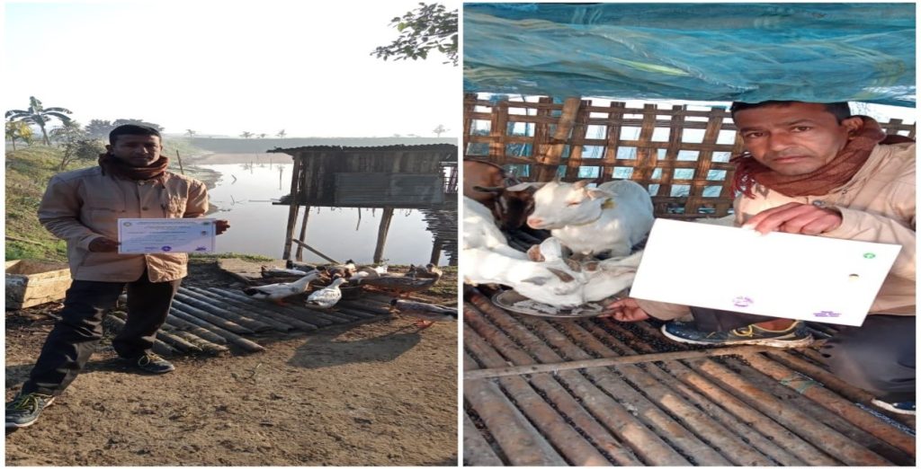 What do you call someone who takes all the adversities and inadequacies in his stride and manages to achieve success in life? Well, that’s Govinda Boniya, of batch no 120, son of Lakhidhar Boniya a retired fourth grade employee of Bordoloni area, Dhemaji District. Education not being Govindas forte, he did not study beyond high school and resorted to job in a local dairy shop. Despite this, Vijay always dreamt high and wanted to achieve success in life. Eventually, he came across an awareness camp conducted by RSETI, Dhemaji about the training programs offered by RSETI, Dhemaji and immediately approached the Institute to enquire more about the training programs. Looking at the varieties of training programmes offered by the RSETI, he decided to undergo training on Piggery & Dairy. Once the training started, it was a delightful experience for Vijay to learn the inputs given during the training which were related to his experience in the dairy shop he worked before and showed total sincerity in acquiring as much knowledge as he could on the subject. This training program also induced self-confidence and entrepreneurial skills in Govinda and hence he decided to launch his own venture of a multipurpose agriculture farm which includes piggery, goatery, fishery, poultry, dairy and agriculture as well.